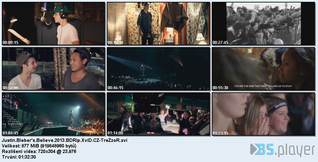 Teenageři ho milují. Dospělí ho nesnášejí. Kontroverzní zpěvák, skladatel a jedna z největších popových hvězd současnosti, Justin Bieber, rozhodně umí vzbuzovat silné emoce. Jeho talent a obrovská vášeň pro hudbu jsou však nezpochybnitelné. V září 2012 vyrazil Justin Bieber na roční světové turné Believe, které zahrnovalo 162 koncertních vystoupení v Severní i Jižní Americe, Evropě, Asii, Africe a Aus-trálii. Většina koncertů v Americe byla beznadějně vyprodána běham 1 hodiny, vstupenky na jeho show v Madison Square Garden zmizely za 22 vteřin. Jako doprovod na část turné Bieber přizval režiséra Jona Chu, který svou lásku k hudbě a tanci ukázal již svými filmy Let's dance 2 a Let's dance 3D. Z této spolu-práce vzniknul jedinečný film, který nám přináší intimní pohled nejen na Bieberovo koncertní turné. Uvidíme vizuálně úchvatný záznam Justinových největších hitů a zároveň nahlédneme do zákulisí příprav a vzniku celé show. Justin Bieber's Believe nabízí výjimečný pohled na zpěvákův život mimo pódium. Film sleduje Justinovu cíle-vědomou cestu od neznámého chlapce, který snil o hudební kariéře, až po zrození jednoho z největších fenoménů dneška.