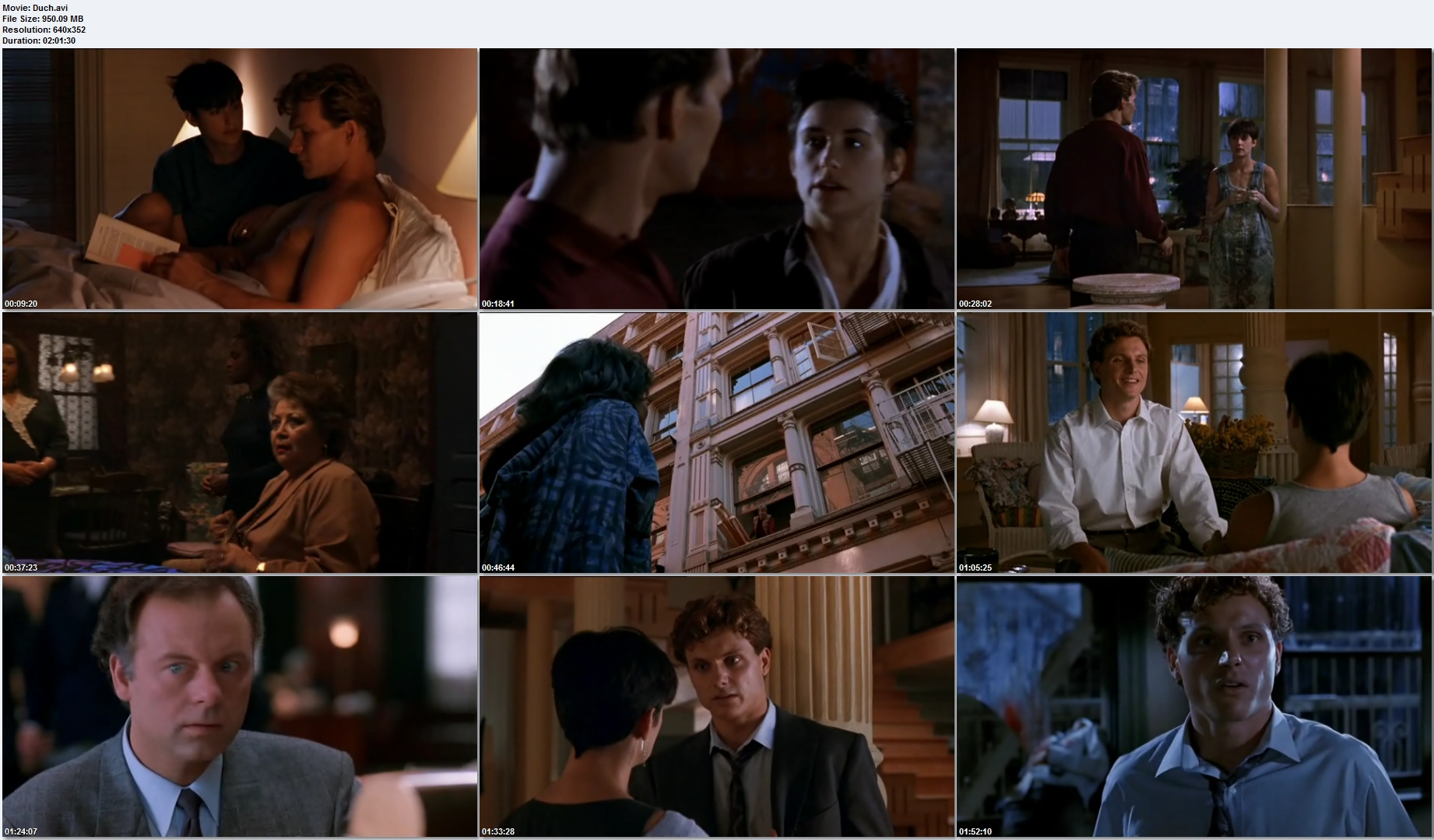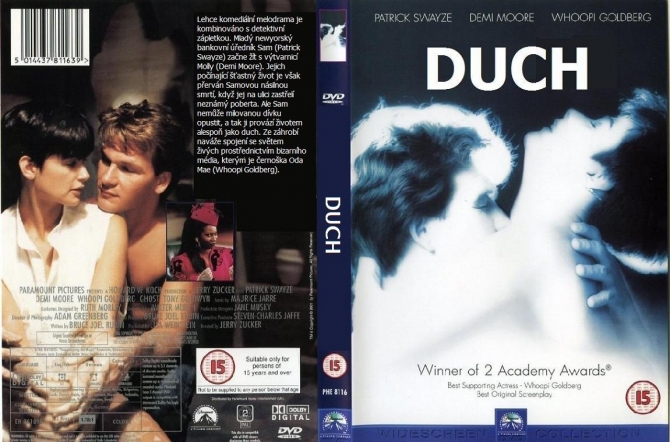 popis: Lehce komediální melodrama je kombinováno s detektivní zápletkou. Mladý newyorský bankovní úředník Sam (Patrick Swayze) začne žít s výtvarnicí Molly (Demi Moore). Jejich počínající šťastný život je však přerván Samovou násilnou smrtí, když jej na ulici zastřelí neznámý poberta. Ale Sam nemůže milovanou dívku opustit, a tak ji provází životem alespoň jako duch. Ze záhrobí naváže spojení se světem živých prostřednictvím bizarního média, kterým je černoška Oda Mae (Whoopi Goldberg)