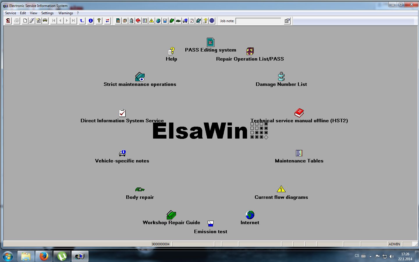 Návod: Archiv rozbalit na cílový disk,po rozbalení spustit soubor ElsaWin.exe,program si vytvoří složku kvůli registrům,tím je instalace dokončena.Nyní spustíte program souborem ElsaWin.exe a přihlásíte se pod uživatelem admin a heslem admin.Všechny funkce fungují korektne(kromě funkcí vázaných na identifikaci podle VIN vozidla) jen v anglickém nebo nemeckém jazyce v českém jazyce nemusí program načíst např. schémata.