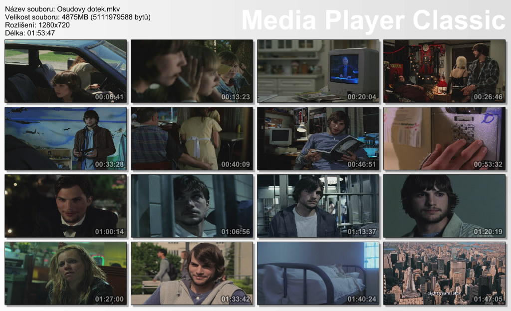 Popis: Osudový dotek je napínavý thriller odehrávající se mezi minulostí, přítomností a budoucností. Mladý fyzik Evan Treborn ((Ashton Kutcher - )) se vydává díky svým zápiskům z dětství na riskantní cestu do minulosti, aby ji změnil, napravil své chyby a setkal se s láskou svého života. Nebezpečný experiment se mu však vymkne z ruky a následky jsou hrůzostrašné...