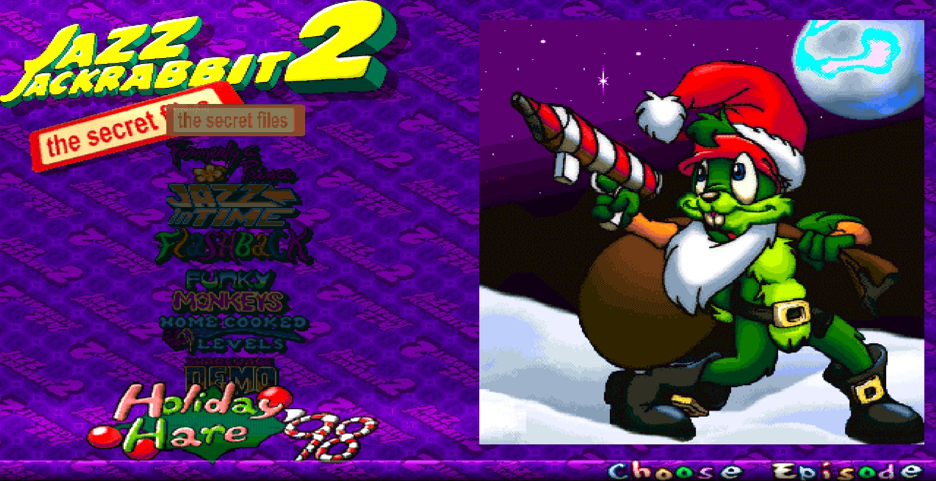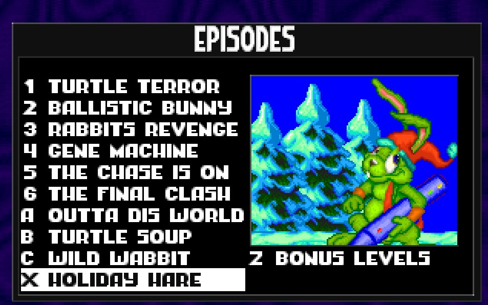Jazz Jackrabbit CD-ROM (1994, v1.3), obsahuje všech 9 epizod, Holiday Hare 1994