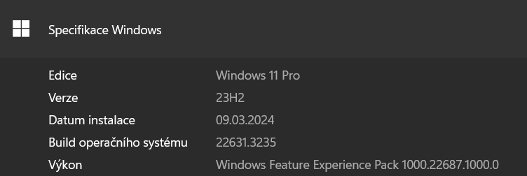 Windows 11 23H2 build 22631.3235 CZ x64 noTPM