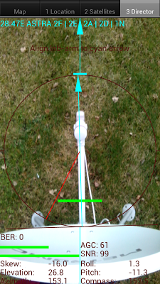 the phones display and the satellite dish is aligned in azimuth with the satellite.