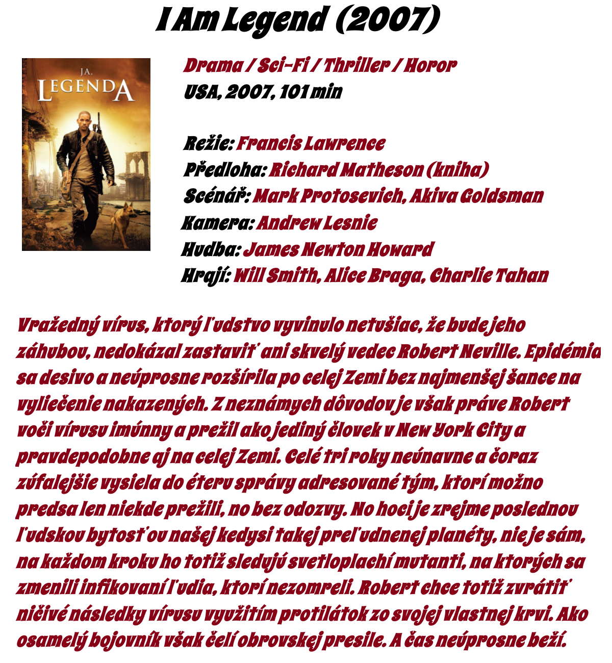 Názov filmu : Ja, legenda