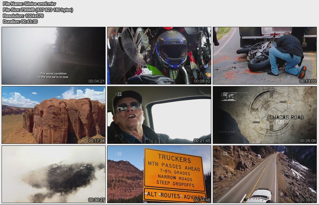 Na světě je osm pekelných silnic plných nebezpečí. Seznámíte se s lidmi, kteří riskují život při jízdě po těchto dálnicích, kde čelí lavinám, skalním sesuvům a dokonce i střelbě.