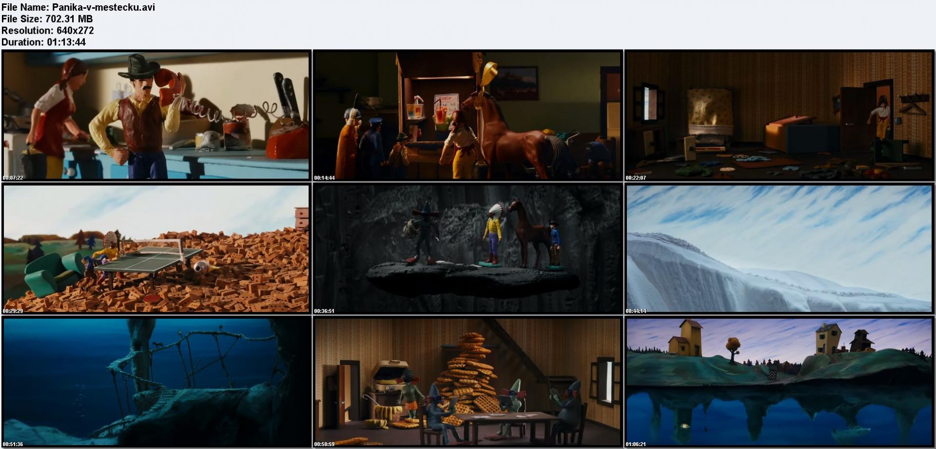 V městečku zvaném Panika, na dohled od farmáře Stevena a jeho ženy Jeanine, žijí v jednom domě Kovboj, Indián a Kůň. Nerozlučná trojice přátel prožívá bizarní dobrodružství, jež je zavedou mimo jiné do středu země, zamrzlé tundry a paralelního podvodního světa obývaného podvodnickými příšerkami se špičatými hlavami. Naši hrdinové jsou plastové figurky evokující dětství, kterým technikou stop motion vdechla život nerozlučná dvojice belgických animátorů. Excentrická komediální šaráda plná vypilovaných odzbrojujících gagů, vycházející mimo jiné z dědictví surrealismu, nabízí animovanou akční podívanou par excellence, jíž před nedávnem doslova podlehlo publikum canneského festivalu. Celovečerní verze neodolatelných peripetií plastových protagonistů, jež vznikala celé dva roky, vychází z kultovního, cenami ověnčeného dvacetidílného televizního seriálu.(MFF Karlovy Vary)