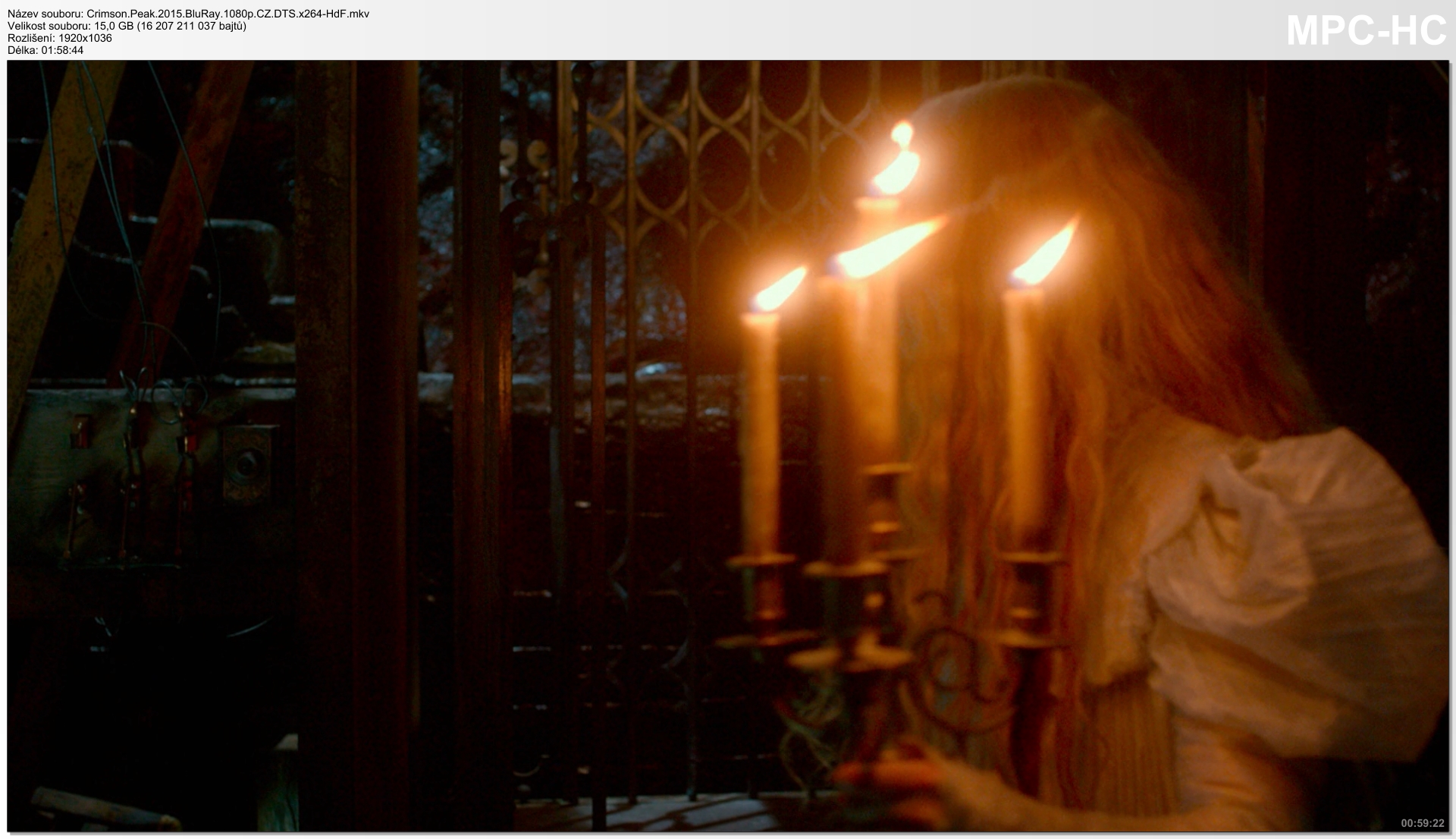 Hlavní Formát: Matroska Format_Version: Version 4 / Version 2 Velikost souboru: 15,1 GiB Duration/String: 1h 58mn Celkový BitRate: 18,2 Mbps Název filmu: Crimson Peak (2015) Encoded date: UTC 2016-02-11 17:19:05 Použitý software: mkvmerge v7.9.0 ('Birds' ) 64bit Enkódoval: libebml v1.3.1 + libmatroska v1.4.2