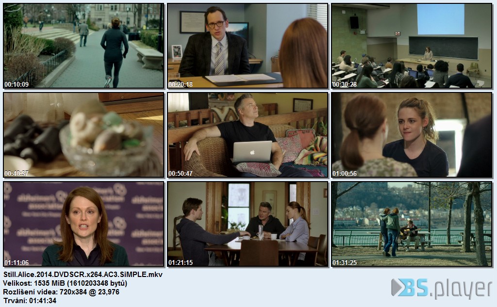 OBSAHAlice Howland - harvardská profesorka, nadaná výzkumnice, lektorka, manželka a matka tří dospělých dětí - si jde ven zaběhat a brzy si uvědomí, že nemá ponětí, jak najít cestu zpátky domů. Touto cestou chodila roky, ale najednou nic nevypadá povědomě. Je naprosto ztracená. Lékařská diagnóza zní: počátek Alzheimerovy choroby. Alice pomalu ale nevyhnutelně ztrácí paměť a spojení s realitou, s čímž se musí vypořádat nejen ona, ale i její rodina.