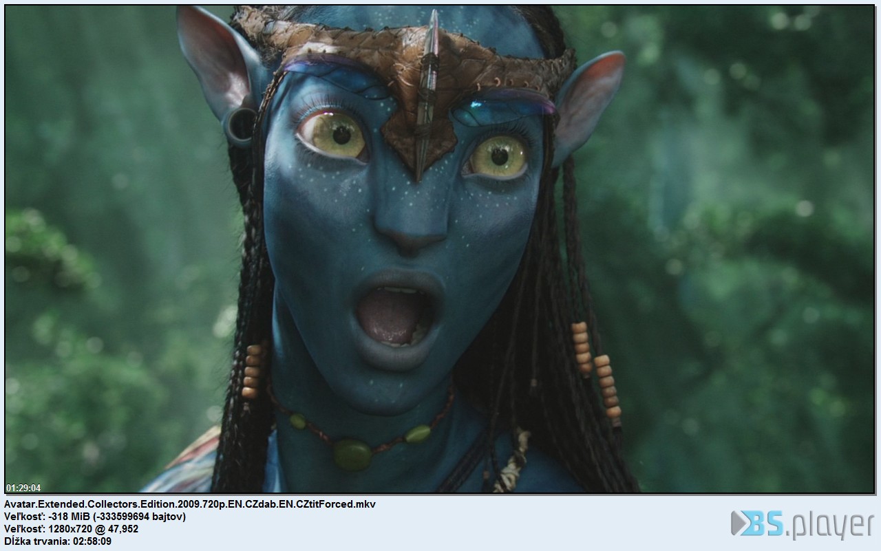 MediaInfoHlavní UniqueID/String: 249422552504374018029413080447897950634 (0xBBA50948D173CEA382651DF62431D9AA) Celý název a cesta: D:FTPFilmyAvatar.Extended.Collectors.Edition.2009.720p.EN.CZdab.EN.CZtitForced.mkv Formát: Matroska Format_Version: Version 2 Velikost souboru: 11,7 GiB Duration/String: 2h 58mn Celkový BitRate: 9 393 Kbps Encoded date: UTC 2010-12-22 17:33:33 Použitý software: mkvmerge v3.3.0 ('Language' built on Mar 24 2010 14:59:24 Enkódoval: libebml v0.8.0 + libmatroska v0.9.0