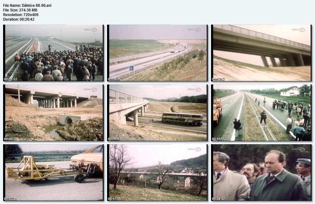11. listopadu 1988 byl uveden do provozu nový úsek dálnice mezi obcemi Holubice a Tučapy. Od 3. května 1989 se buduje pak navazující úsek dálnice D47 od obce Tučapy až po Olomouc. Souběžně s tím jsou v procesu výstavby nejen další navazující dálniční přípojky, ale i rozšiřování hlavních dopravních tepen D1 a D2. Dokument tak zachycuje sledování výstavby dálnic v České republice v letech 1988 - 1990.