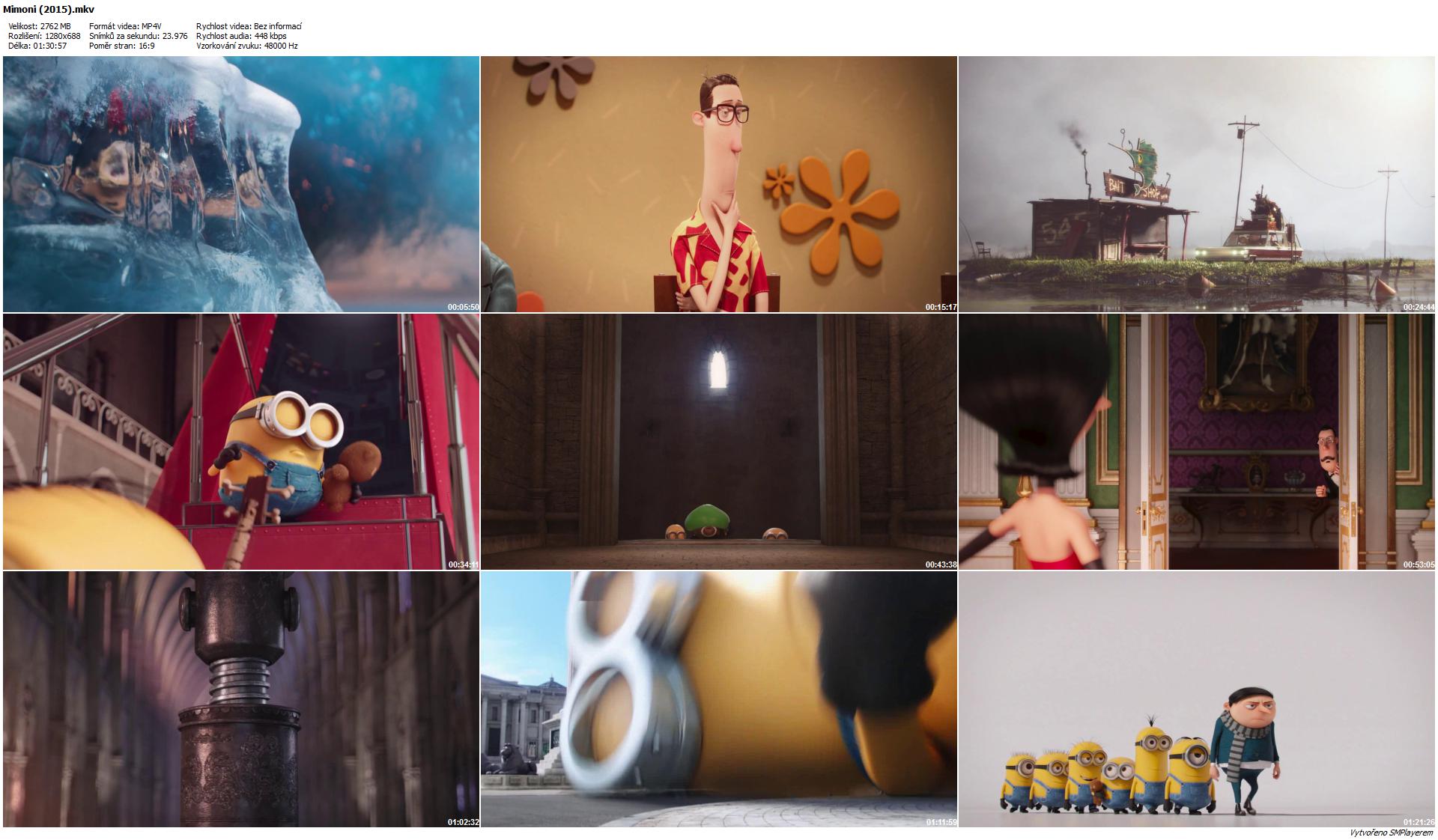 Zamysleli jste se někdy nad tím, proč vlastně ti žluťoučcí a k sežrání roztomilí Mimoni dobrovolně slouží Gruovi, padouchovi s velkým P? Odpověď přináší animovaná komedie Mimoni, která z nich konečně a především zcela zaslouženě dělá hlavní postavy jejich vlastního příběhu. Odpověď na výše uvedenou otázku najdete hned úvodu, který mapuje historický vývoj Mimoňů. Představte si, že tihleti dobráci od kosti vidí odnepaměti smysl své existence v posluhování tomu největšímu darebákovi široko daleko. Kdykoliv shodou náhod, ke kterým často přispívali oni sami, o svého pána přišli, hned si hledali dalšího. A tak to šlo celá staletí, od Tyranosaura Rexe, přes hraběte Drákulu a císaře Napoleona až do okamžiku, kdy žádného nového nadřízeného najít nedokázali a upadli do hluboké deprese. Tu zvýraznila i skutečnost, že se v onen tragický moment nalézali v zemi věčného sněhu a ledu. Naštěstí se v jejich středu zjevili tři hrdinové – hrdý Kevin, hladový Stuart a lehce vystresovaný Bob. Ti vyrazili do světa, aby všem svým mimoňským kamarádům vrátili smysl života. Štěstěna je zavedla až do Ameriky, na floridský festival zločinců všeho typu, jehož se měla zúčastnit i absolutní královna světového zločinu, Scarlett Odkráglová. „Ta a žádná jiná!" řekli si Kevin, Stuart a Bob a okamžitě zahořeli touhou začít pro Scarlett pracovat. Sympatie rozhodně nebyly oboustranné, přesto se zlodcera s trefným příjmením rozhodla vyzkoušet jejich schopnosti. Co takhle šlohnout britské korunovační klenoty? A tak se Kevin, Stuart a Bob vydávají do staré dobré Anglie, přičemž zdaleka netuší, že v příštích dnech není v sázce jen to, co bude Alžběta nosit na hlavě, ale také samotná existence jejich živočišného druhu.