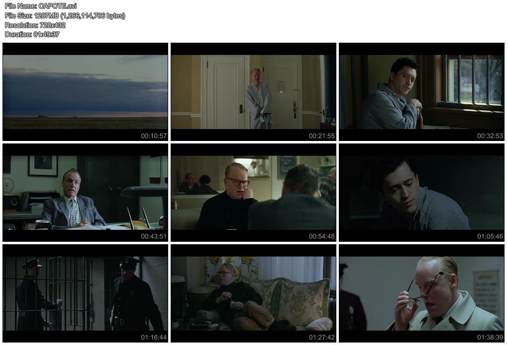 Přestože jeho dětský hlásek, bláznivé manýry a nekonvenční oblečení vzbuzují v oblasti, která se stále považuje za součást starého Západu, zprvu nepřátelské pocity, Capoteovi se brzy podaří získat si u místních lidí důvěru - zejména pak u Alvina Deweyho (Chris Cooper), agenta kansaského úřadu vyšetřování, který vede pátrání po vrazích. Když se oba zabijáky - Perryho Smithe (Clifton Collins Jr.) a Dicka Hickocka (Mark Pellegrino) - podaří v Las Vegas chytit, jsou odvezeni zpět do Kansasu, kde je čeká soud, usvědčující rozsudek a trest smrti. Capote je začíná navštěvovat ve vězení a pomalu si uvědomuje, že to, co mělo být původně novinovým článkem, se postupem času rozrostlo až na knihu - takovou knihu, která by se mohla zařadit mezi nejvýznamnější tituly v soudobé literatuře. Jeho téma se nyní může rovnat s kterýmkoliv fiktivním románem. Nejedná se o nic menšího než střet dvou tváří Ameriky: bezpečného světa, který znali Clutterovi, a světa bez jakýchkoliv jistot a hodnot, v němž žijí jejich vrazi. Přestože Capote navenek působí frivolně, uvnitř dřímá spisovatel s obrovskými ambicemi. Ale i on sám má pochyby, zdali dokáže napsat knihu - skvělou knihu - kterou mu dle jeho přesvědčení přihrál sám osud. "Když přemýšlím, jak dobrá by mohla být," píše jednomu ze svých kamarádů, "úplně se mi tají dech."(oficiální text distributora)