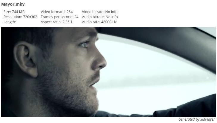 Video ID: 1 Format: AVC Format/Info: Advanced Video Codec Format profile: Main@L4 Format settings, CABAC: Yes Format settings, ReFrames: 4 frames Codec ID: V_MPEG4/ISO/AVC Duration: 1h 39mn Nominal bit rate: 900 Kbps Width: 720 pixels Height: 302 pixels Display aspect ratio: 2.40:1 Original display aspect ratio: 2.40:1 Frame rate mode: Constant Frame rate: 24.000 fps Color space: YUV Chroma subsampling: 4:2:0 Bit depth: 8 bits Scan type: Progressive Bits/(Pixel*Frame): 0.172 Writing library: x264 core 148 r2643 5c65704 Default: Yes Forced: No Color range: Limited Color primaries: BT.709 Transfer characteristics: BT.709 Matrix coefficients: BT.709
