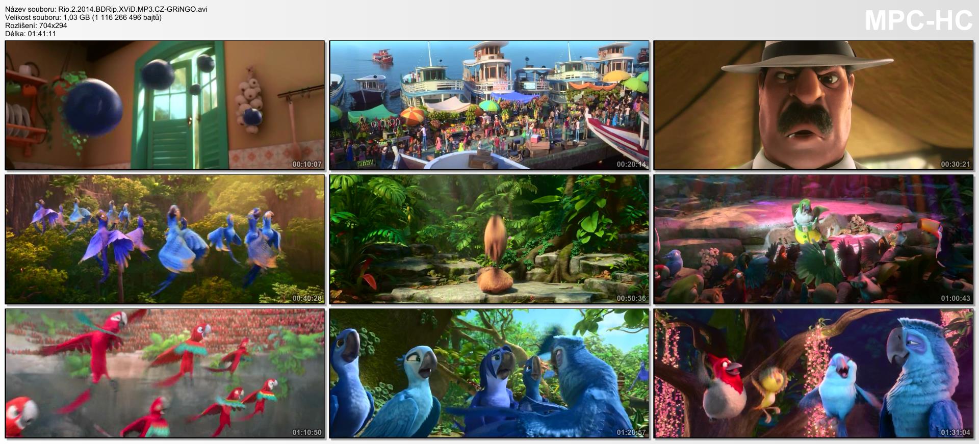 Vzácní modří papoušci Blu a Perla žijí v brazilském Riu poklidným městským domáckým životem. S nimi tam postupně vyrůstají i jejich tři děti. Nejmladší Raubíř je věrný svému jménu a touží po dobrodružství a to hlavně tehdy, pokud se při něm dá i něco tak trochu zničit. Dalším je Bia, který se tak trochu potatil, díky čemuž všemu rozumí a všechno zná, co nezná, to si rychle nastuduje. Nejstarší z dětí je Karla, která si myslí, že už dospěla do věku, kdy se má pomalu vymanit zpod ochranných křídel rodičů a začít vyjadřovat svou osobnost třeba pomocí hudby. Když Perla rozhodne, že se všichni musí naučit žít jako opravdoví ptáci, je už jen krůček k zásadnímu rozhodnutí vyrazit na rodinný výlet do amazonské džungle. Blu si sice od svých přátel vyslechne spoustu důvodů, proč nemá nikam jezdit a jaká nebezpečí tam na ně čekají. Ale nakonec se zařídí podle tukana Rafaela a jeho rady, že šťastná manželka znamená šťastný život. A tak se ocitnou v amazonské džungli, kde se trochu nečekaně setkají se svými příbuznými a tím skončí i jejich přesvědčení, že jsou posledními modrými papoušky na světě. Blu se navíc v džungli necítí zrovna moc jistě. Jednak zde musí nečekaně čelit svému nejobávanějímu protivníkovi tchánovi a zároveň se vyhnout ďábelským plánům na odplatu, kterou pro něj zosnoval padouský a mstivý kakadu Nigel.(CinemArt)