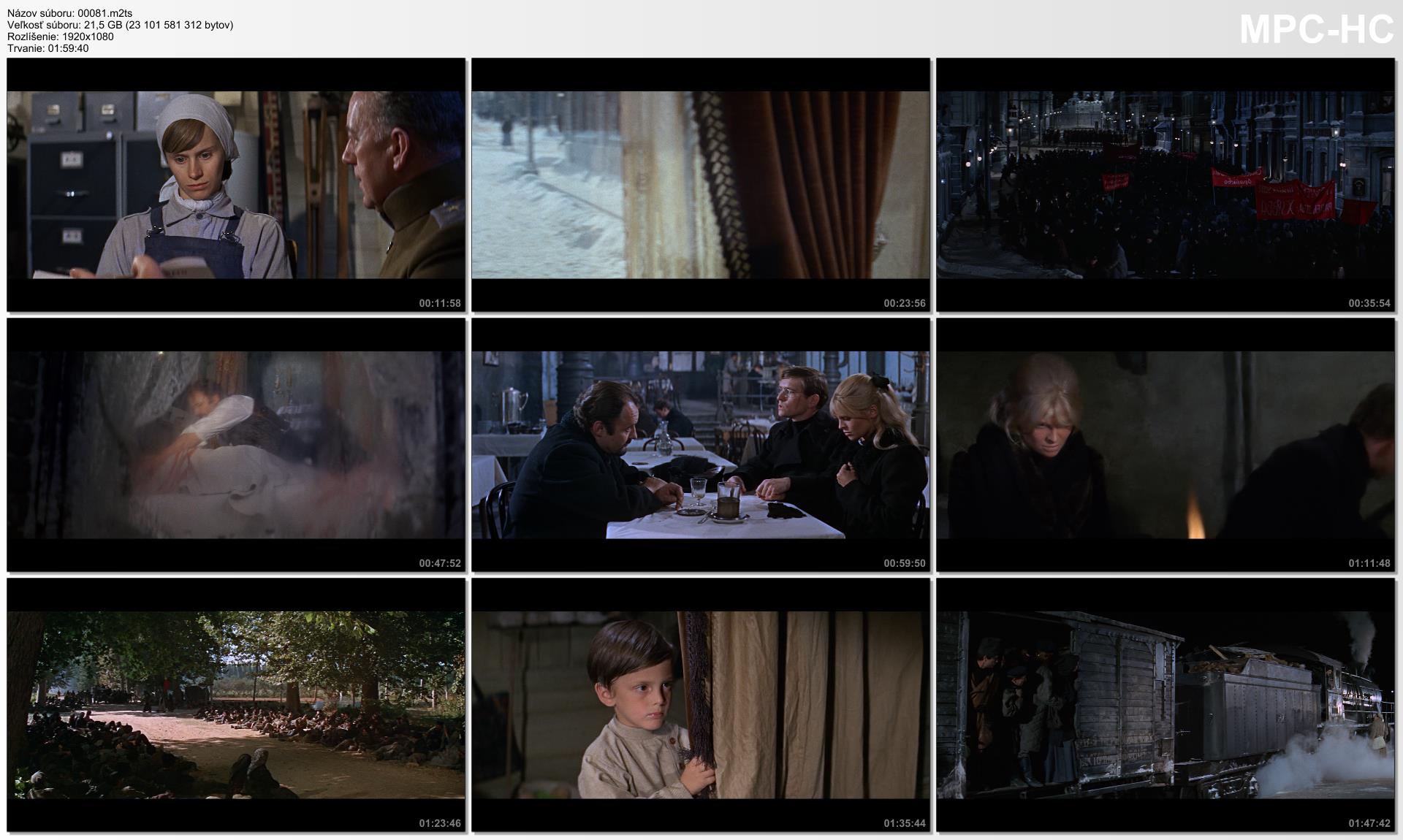 Politické boje se stupňují. Rusko neodvratně kráčí vstříc komunistické diktatuře. Jeden muž v této těžké době miluje aristokratku a zároveň manželku bolševického vůdce. Americké drama oceněné 6ti Oscary natočené podle známé knihy Borise Pasternaka
