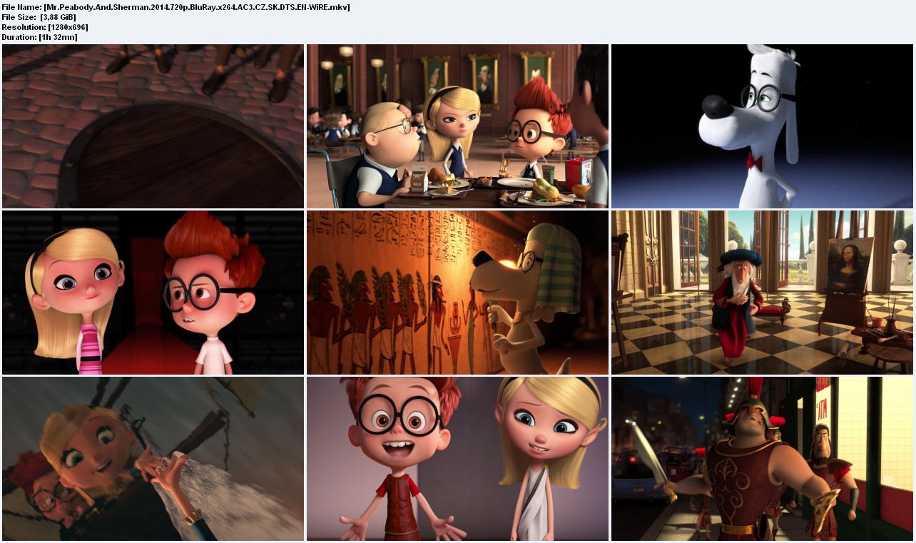 I proto, aby ukojil synkovu touhu po poznání historie, vynalezl pan Peabody úžasný přístroj jménem Časomat. A díky tomu mají přístup kamkoliv do minulosti. Společně tak zažívají neskutečná dobrodružství, která si člověk nebo pes dokáže sotva představit, poznávají slavné postavy i okamžiky dějin. Na cestách časem musí dodržovat pár zásadních pravidel jako nikdy se nesetkat sám se sebou", nebo jen minimálně ovlivňovat minulost nebo raději vůbec", což se jim daří do chvíle, než Sherman potajmu vezme na divokou projížďku Časomatem svou spolužačku Penny, na kterou chce udělat dojem. Nechtěně zamíchají několika nejdůležitějšími událostmi světových dějin a nakonec jim pan Peabody musí přispěchat na pomoc a zachránit je, než se navždy změní minulost, přítomnost i budoucnost. Můžete se těšit na velkou legraci a pár zábavných setkání s velikány světových dějin, při kterých občas může tuhnout krev. Komu by neztuhl úsměv, kdyby se ocitl před branami Tróje ve finální fázi dobývání tohoto města, nebo v Paříži v době Velké francouzské revoluce?