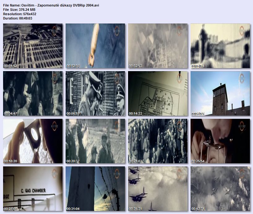 Popis :Nacistické vyhlazovací tábory v polské Osvětimi byly pozoruhodně podrobně vyfotografovány ze vzduchu. Rozlehlý areál vyhlazovacího tábora Osvětim-Birkenau se nacházel pouhých 8 kilometrů od velké továrny na výrobu syntetických maziv a gumy. Podobné podniky se staly hlavními cíli spojeneckých bombardérů. 4. dubna 1944 americký průzkumný letoun poprvé pořizoval letecké snímky továrny a jejího okolí. Náhodou zachytil i hrůzy v nedalekém Osvětimi - plynovou komoru a krematorium, nechvalně proslulou popravčí zeď, strážní věže, bezpečnostní ploty a řady baráků připomínající kasárna, kde žili vězni. Fotografie pořízené později v srpnu a září 1944 zachycují vlak přijíždějící na výstupní místo v táboře. Pořad vzbuzuje nepříjemné otázky - jestliže spojenecké letouny mohli koncentrační tábory detailně vyfotografovat, proč je nemohly zničit?