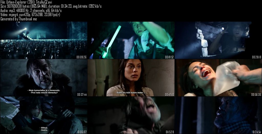 Jazyk:Nemecký Titulky:České (interné) Odkaz na CSFD: http://www.csfd.cz/film/300026-urban-explorer/komentare/ Odkaz na FDb: http://www.fdb.cz/film/urban-explorer/88917 Odkaz na IMDb: http://www.imdb.com/title/tt1642665/?ref_=fn_al_tt_1 Rok vydání:Německo, 2011 Délka:91 min Žánr:Horor (slasher/exploitation) / Thriller
