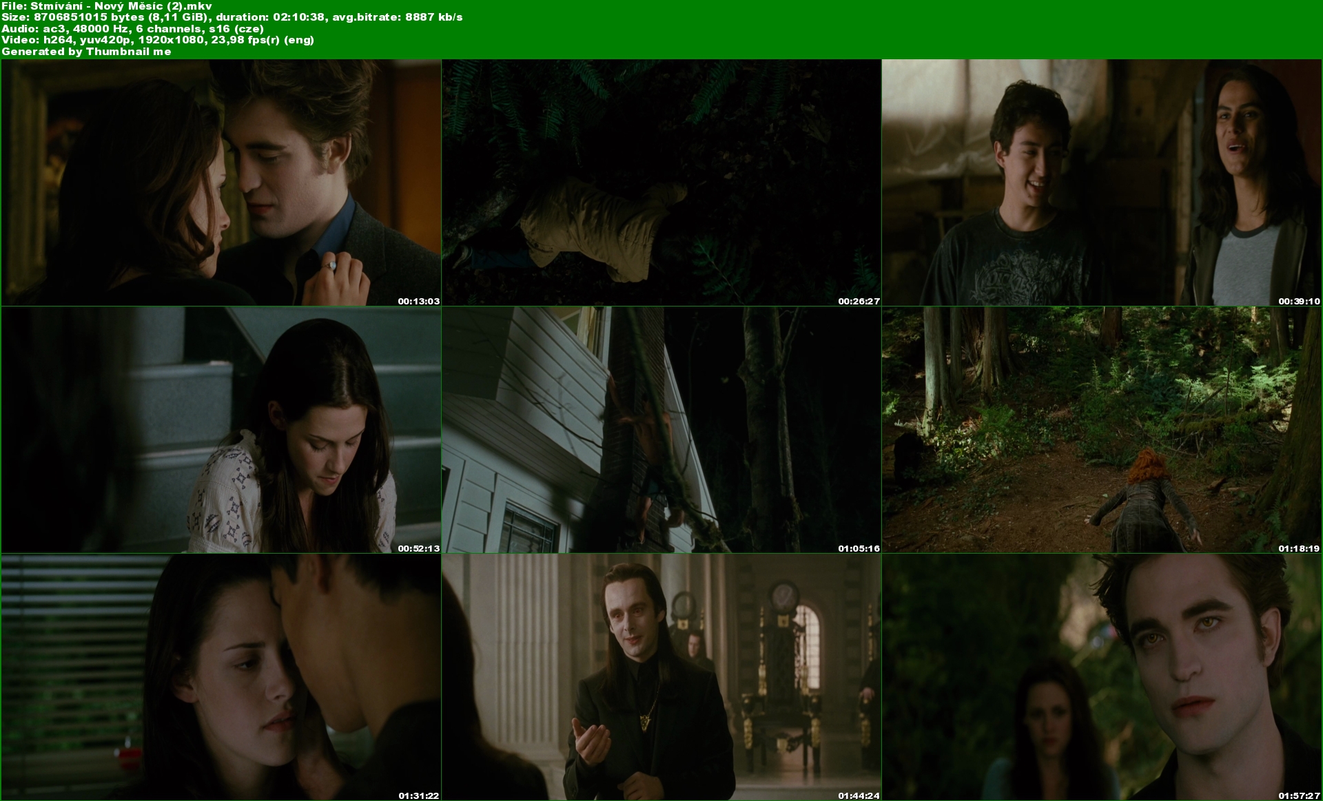 Popis: Poté, co se Bella zotaví z útoku upíra, který ji málem stál život, chystá se s Edwardem a jeho rodinou oslavit své 18. narozeniny. Nešťastnou náhodou se však Bella při oslavě poraní a pohled na čerstvou krev je pro rodinu Cullenových až příliš lákavý. Rozhodnou se pro Bellino bezpečí opustit městečko Forks. To však Belle zlomí srdce. Už se zdá, že se ze svého smutku nikdy nedostane, ale nový smysl života překvapivě nachází v nezodpovědném chování a stále hlubším přátelství s Jakobem Blackem. Nebezpečí však na ni stále číhá v různých podobách.(oficiální text distributora)