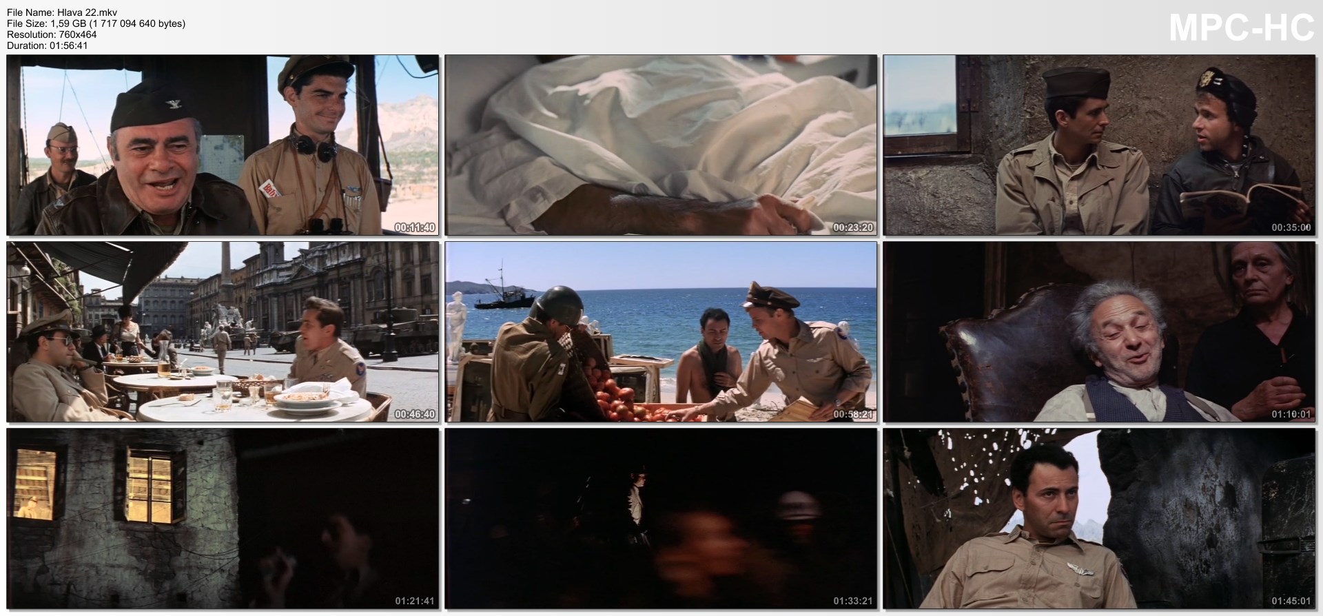 Dokud nebudeš ležet bradou vzhůru, musíš bojovat! Americká satira na válku podle stejnojmenného románu Josepha Hellera. Kapitán John Yossarian je bombometčíkem u 256. letecké eskadry americké armády umístěné na základně u Itáliie, která odtud pomáhá při osvobozování Evropy od fašismu. Vlastně měl už být dávno doma, protože vojenským zákonem nařízený limit třiceti misí dávno překročil. Jeho velící důstojník, cynický plukovník Cathcart má však nedostatek pilotů, a tak počet povinných letů neustále zvyšuje, aby žádný z nich nemohl z letky odejít. Yossarian se proto snaží přimět doktora, aby jej z další služby osvobodil kvůli špatnému psychickému stavu a vydává se za cvoka. V cestě mu však stoji "maličkost". Podle Hlavy 22 musí na své bláznovství upozornit blázen samotný. Podle stejné směrnice je takový člověk v pořádku, protože blázen si nepřipouští, že je blázen. A tak je Yossarian lapen v absurdní válečné mašinerii, jež nikoho dobrovolně nepustí, dokud jej nesemele na prach... Film, který natočil režisér Mike Nichols (Kdo se bojí Virginie Woolfové?, Absolvent, Biloxi Blues, Ptačí klec, Na dotek), vznikl podle stejnojmenného, úspěšného románu spisovatele Josepha Hellera. Přesvědčivě vypráví o nesmyslnosti válčení a tuposti těch, kteří cynicky nasazují cizí životy pro vlastní cíle. Dodnes patří mezi nejlepší a nejpůsobivější protiválečné filmy. Hlavní postavu Johna Yossariana vytvořil Alan Arkin, jeho nadřízeného, Cathcarta představuje Martin Balsam. Legendární režisér a herec Orson Welles ztvárnil úlohu generála Dreedlea, známý člen popového dua Simon a Garfunkel, zpěvák Art Garfunkel hraje kapitána Natelyho.