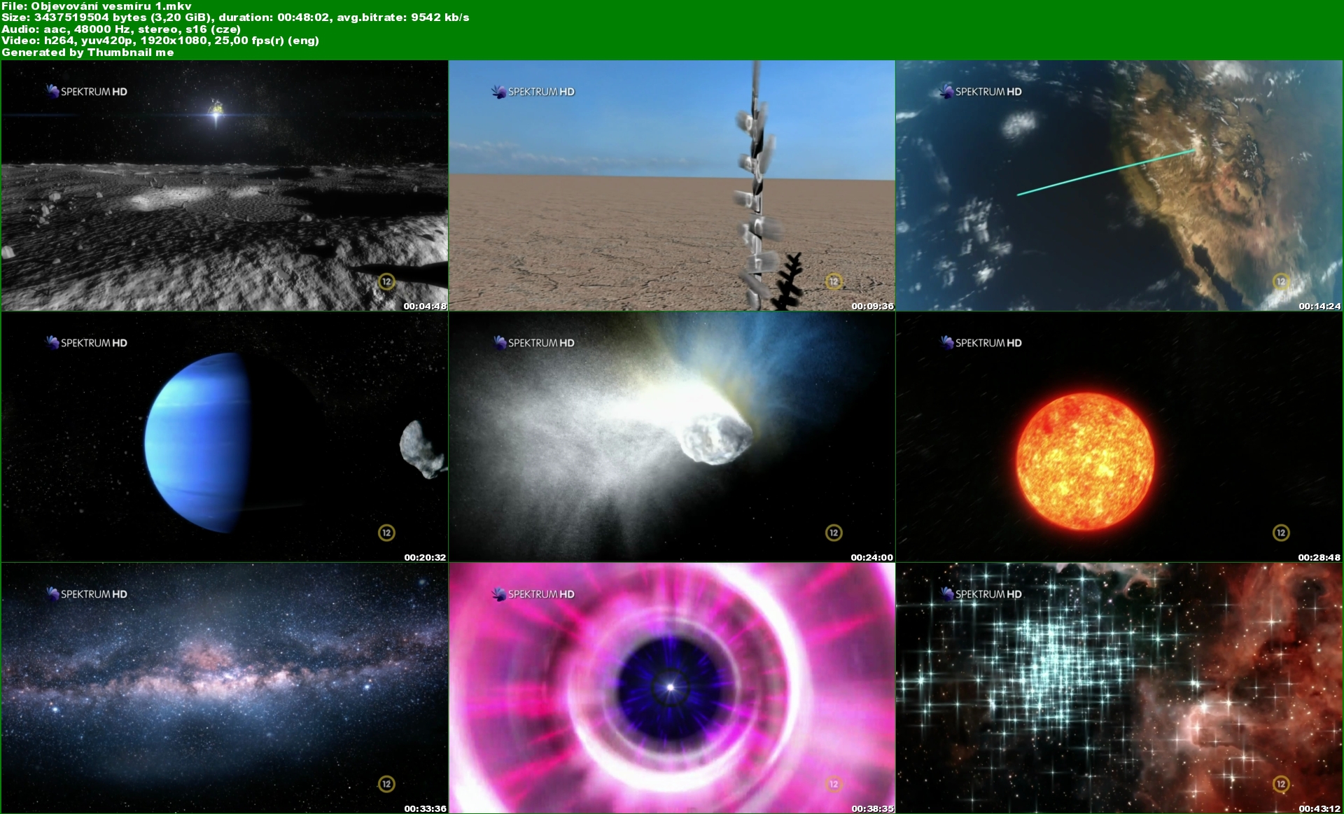 Popis:Jakou podívanou bychom nalezli uvnitř takového ocasu komety nebo uprostřed hvězdné mlhoviny? Jaké bychom zažívali pocity při pohybu vykonávaném rychlostí světla a jak je asi horký povrch Merkuru. Z nejnovějšího seriálu televizního kanálu Spektrum, který se pídí po tajemstvích vesmíru, se nejen dozvíme odpovědi na položené otázky, ale s pomocí animací využívajících dosud nevídaných možností vytvářet reálně působící prostorové iluze budeme mít pocit, že si na předváděné jevy můžeme přímo sáhnout.(oficiální text distributora)