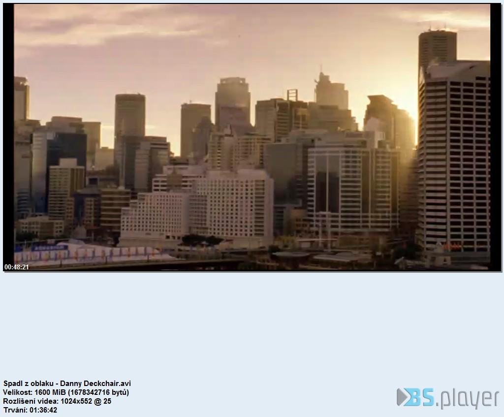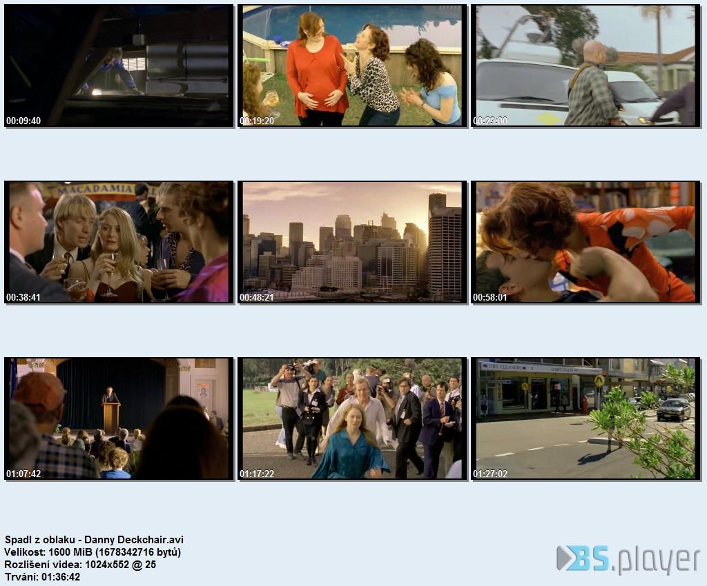 General Complete name: C:\ Spadl z oblaku - Danny Deckchair.avi Format: AVI Format/Info: Audio Video Interleave Format profile: OpenDML File size: 1.56 GiB Duration: 1h 36mn Overall bit rate mode: Variable Overall bit rate: 2 314 Kbps Movie name: Spadl z oblaku.Title1 Writing application: Lavf54.63.104 Original source form/Name: Spadl z oblaku