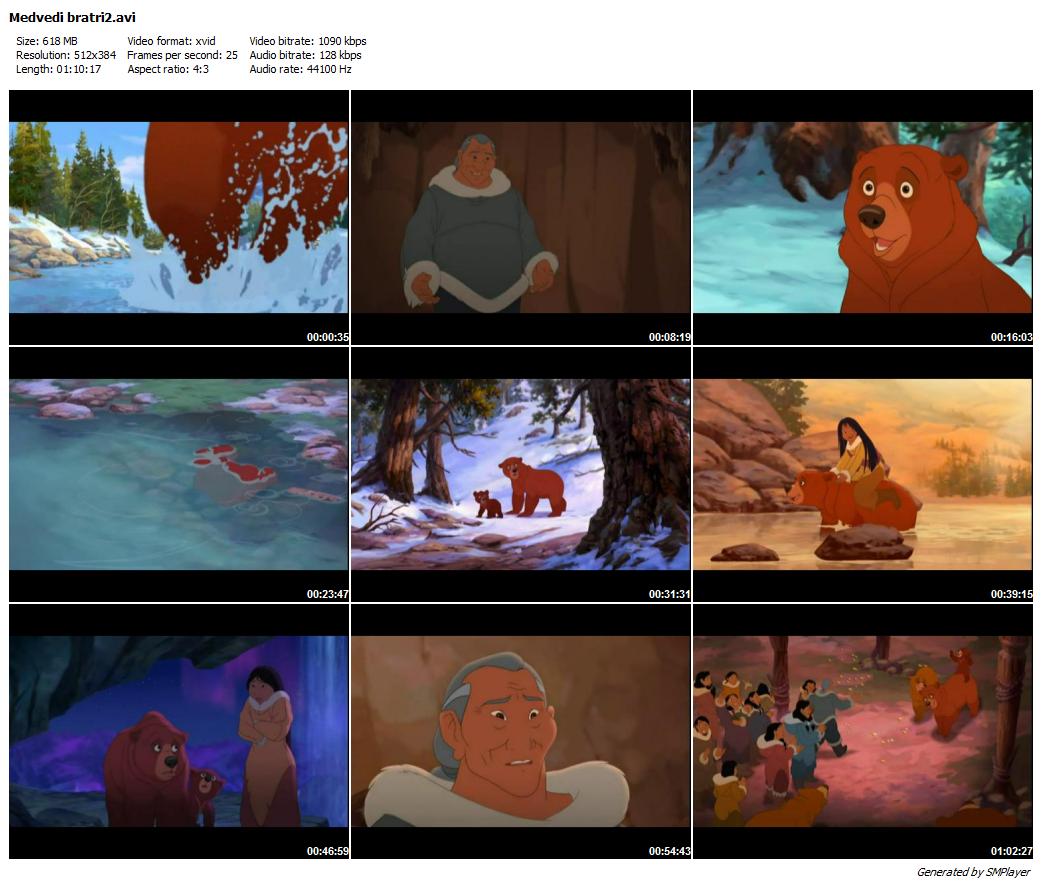 A jsme zpátky v novém pokračování úspěšného filmu "Medvědí bratři". Doprovázet Vás budou stří známí - losi Říja a Kukich, velký medvěd Kenai, jeho malý bráška Koda a holčička Nita. Nita poznala Velkého medvěda, když ještě nebyl zvířecím chlupáčem. To bylo v prvním dílu - vzpomínáte si? No, v každém případě si tenkrát mysleli, že zůstanou nejlepšími přáteli navěky, i když... jen tak mezi námi... spolu vycházeli jako dva tvrdohlaví bobři, kteří se chtějí zakousnout do stejné dřeviny. OK, nyní je Velký duch vyzval, aby se vydali na dobrodružnou cestu divokou přírodou a zrušili jeho kouzlo.